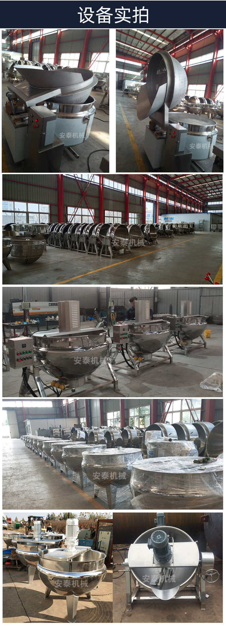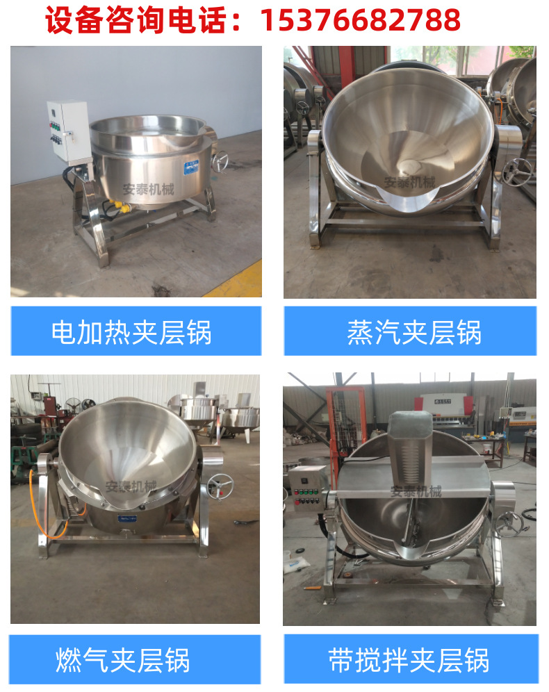 大型液化气煮锅 不锈钢夹层锅的优点是燃烧比较充分,不会产生大量的烟,基本上不会造成环境污染。燃气夹层锅的燃料主要为液化石油气、管道煤气和天然气,因此夹层锅加热采用的是明火,火焰温度可以随意调节,高可达到300℃,不仅如此,燃气夹层锅的热效率比起同类产品来,可提高25%左右,而它的耗气量却不足同类产品的20%,因此,燃气夹层锅非常的节能省钱。它的缺点是在物料加热时需要人工搅拌,才能受热均匀,非常麻烦。燃气夹层锅广泛用于蒸煮食物、炒菜、调配原料之用,也可辅助整条饮料生产线的加工,是食品加工提高质量、缩短时间、改善劳动条件的良好设备。燃气夹层锅应放置在通风条件良好的房间内。要求地面为水泥地面,平整、坚实,地幅大小适当,有足够的人员操作空间;设备放置调整平稳,并用地脚螺栓固定。